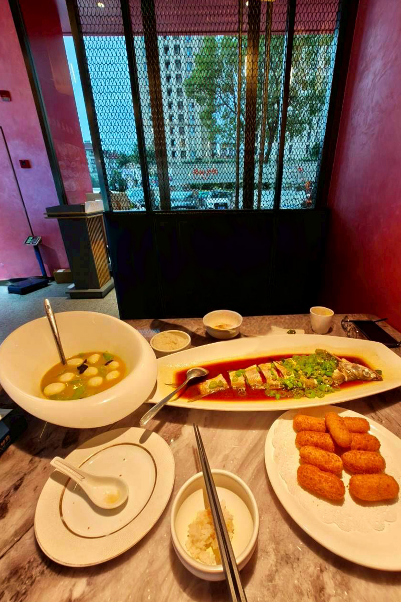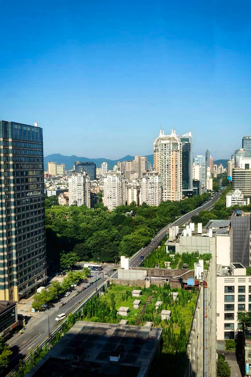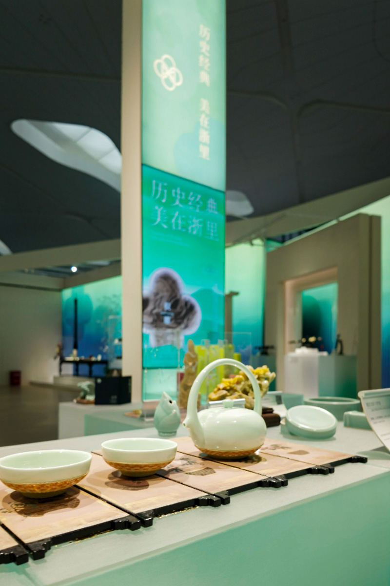 浙江|杭州室內中國, 杭州, 色彩文旅 員工旅遊的第一次出境,我們選擇了杭州,這座充滿美景與文藝創作的地方。江河匯聚,成就了南宋古都的優美與典雅。 機窗外,雲霧藍鋪展,降落後走進機場展館,湖水綠的漸層桌展示溫潤青瓷綠的茶器,搭配乳白色發光台座,讓器物宛如在水中呼吸。連公共空間也有巧思:玻璃彩繪以藍綠色山水映襯橘紅色衣裙、青衣書生,冷暖交融,靜靜述說生活的雅緻,讓視覺與呼吸舒展,感受到杭州的典雅與詩意。 我們入住亞朵酒店,推開落地窗,城市在藍天下被大片綠色樹海擁抱,綠意沿著道路、屋頂與遠山鋪展。下樓即是花園,粉色繡球在陽光裡團簇盛放,於是我們把同樣的粉色帶進房內,插上一束芍藥,柔軟的花瓣與床邊暖燈相映。噴上往事香氛,細膩的果花味在空氣中流轉,像把五月封存進日常。夜裡回望窗景,城市的綠、花園的粉與房裡的香,聽風拂樹,心也靜了,更覺幸福。 在杭州,一日三餐像一場溫柔的流水。清晨拉開窗簾,浙江人的早晨,先來一碗現煮小餛飩,湯清味鮮,入口是蔥白與胡椒的暖意;再配一份荷包蛋與時蔬,精神立刻被喚醒。中午轉進街角面館,筷子挑起筋道麵條,紅燒、蔥油、雪菜黃魚各擅其長,飯後甜點-白毫浸荔枝,與綠蔭窗景相映,長夏心閑。入夜臨窗而坐,清蒸江魚泛著琥珀色的醬油光,鮮甜在唇齒回旋;或點一盆香辣小龍蝦,火紅熱烈。從早到晚,杭州把味蕾照顧得妥帖。再以一盞西湖龍井收尾,胃口與心情都被治癒。這就是江南的日常,耐人尋味。 天目里的藝術展是非常值得一看的地方,展場寬敞潔白,色彩在空間中自由呼吸,各種繪畫色彩,以大膽的對比色搭配跳出視野。另一隅,自然古樸的大地色,紫砂與段泥色,手作的溫度延展色彩靈感,以原始的技藝呈現。逛完後,我們走進街角的咖啡館,窗邊坐位被午後陽光柔柔包圍,嚐著拿鐵的奶泡與焦糖起司蛋糕的甜香,望著窗外的樹影與人群流動。藝術與生活在此刻交融,眼有色彩,心有餘韻,時間因此變得溫柔。