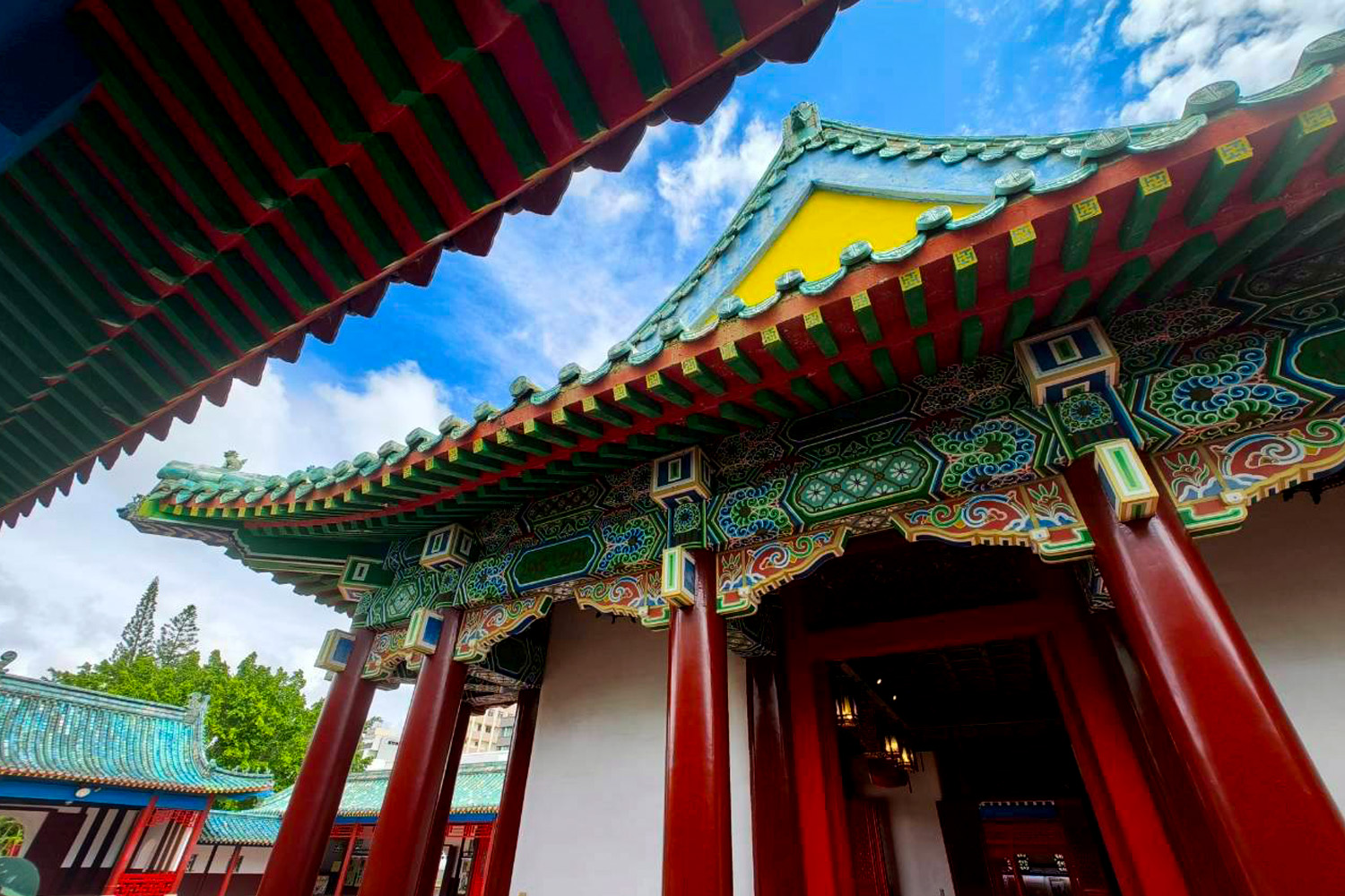 台南台南, 台灣, 色彩文旅 為了欣賞奇美博物館的原畫展覽,我們員工遊學來到了台南。 白色的主題,讓宏偉的廣場與雕塑,都變得肅穆莊嚴。希臘式的石柱高聳,雕塑群在碧綠草地間閃爍著柔光,彷彿時間也因此慢了下來。 進入館內,世界名畫的色彩世界一一展開,從巴洛克的金紅厚重到印象派的霧藍輕盈,色彩的語言在這裡彼此對話。一幅幅油畫展現出不同的生命溫度:柔粉與淡膚色表達青春甜美;耀目的孔雀藍與金黃色體現出貴族的時尚尊貴;而紅色與孩童純真的眼神,最為立體逼真。 還有很多印象派,模糊的柔和配色,則是賦予人們無限遐想。當視線停在莫內筆下這幅清水綠與柔霧紫時,彷彿能聽見光影在畫面間流動的聲音。這一刻,色彩不只是美學,更像是一場跨越時空的對話。 我們入住在台南市中心的老房子民宿,整體家居空間以復古木頭色系為主,深淺相間的柚木與竹編家具散發著自然溫度,讓人感受到早期台南老宅的在地風格。竹編床頭與柔光燈具的金黃色相映,形成柔和的暖色層次,讓空間更添幾分溫潤與安定。 清晨推窗而出,樓下即是傳統市場,五顏六色的蔬菜與熱氣騰騰的小吃攤,構成一幅最真實的在地色彩。從鮮橙胡蘿蔔汁到翠綠青菜,從金黃的炸物到紅豆甜湯,台南的味道總是繽紛又溫暖。這樣的住宿體驗,不只是休息,更像是一場關於色與味的生活對話。 走過不遠處,就是台南著名的林百貨。推門而入,彷彿穿越回日據時代的摩登年代。復古的木質櫃架、老式收音機、百貨店的懷舊擺設,都散發著濃厚的昭和氣息。這裡的文創設計以紅色為主調,象徵熱情與記憶;搭配黑色與金色的復古字樣,帶出一種沈穩的時代美感。 逛在林百貨,像是一場視覺與文化的結合,感受舊時光裡的懷舊與新時代的創意相遇,從女孩圖案的紅色鐵盒,到細膩圖案的彩繪花磚,都是台南色彩與工藝的縮影,忍不住每件都想要仔細端詳。 不遠處,赤崁樓的紅牆在陽光下閃爍著歷史的光澤,登上城樓,最先映入眼簾的是紅與藍的強烈對比,門框、窗櫺與屋簷之間皆以鮮豔的朱紅與寶藍交錯,對比且鮮明。這種色彩組合不僅具視覺張力,也象徵著台南文化的熱情與深度。 綠色琉璃欄杆則如翡翠般透亮,隨光線轉動,反射出細膩玲瓏的古典之美。雕梁畫棟的細節更見匠心,層疊的紋飾紅色與藍色的強烈對比,構成台南記憶中最鮮明的一抹色彩,也映照出赤崁樓明麗莊嚴,彰顯著台南的繁華。 台南孔廟與鄭成功祖廟毗鄰而立,大面積的紅色在這裡形成了紀念與驚醒,智慧與勇氣並存,才能讓世代的忠誠與守護傳承。步入廟中,琉璃綠瓦映著碧藍天空,朱紅的柱梁在綠蔭間閃耀著。正紅色,猶如一條貫穿古今的紋理,是傳承的象征。